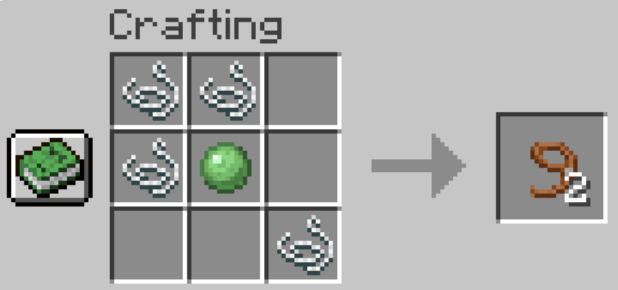 Place 4 strings and 1 slimeball in a specific pattern (see crafting section above).