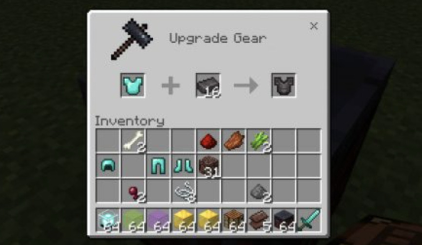 - Upgrade Diamond armor using Netherite Ingots + Upgrade Templates at a Smithing Table.