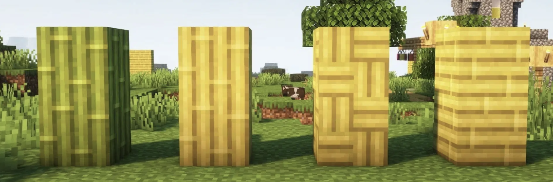 Technically crafted from Bamboo, it's a woven greenish-yellow wood that's awesome for tropical builds. Bonus: Bamboo grows fast, making it super renewable!