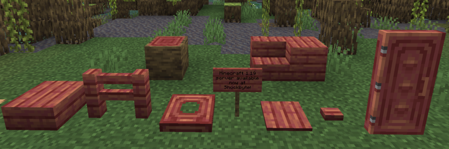This wood has deep red tones and comes with cool root structures. Ideal for swampy builds and unique aesthetics.
