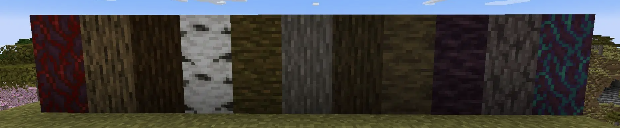 Let's kick things off with the classics! These are the wood types you'll find in the Overworld.
