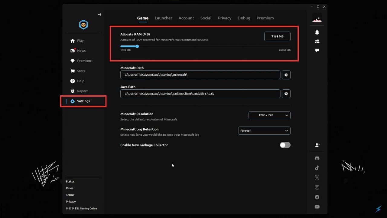 Open Settings - Head to the settings in the Badlion Client launcher.