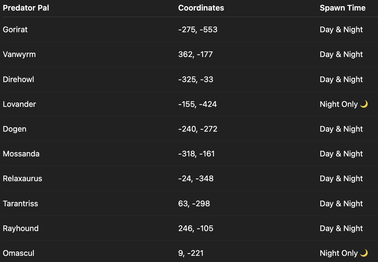 Pro tip: Build your base near a Predator Pal spawn for easy farming!