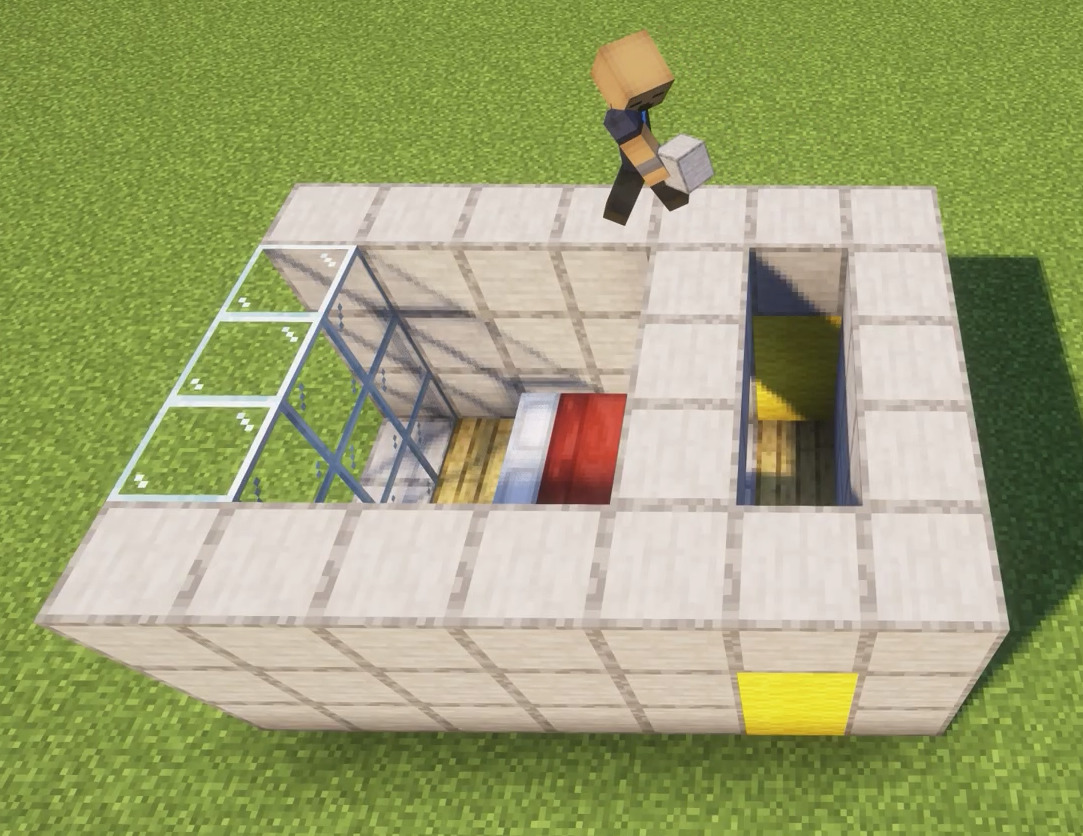 - Making sure to build a 'beam' between the 3x3 room and the 3x1 room (this will be important later)
