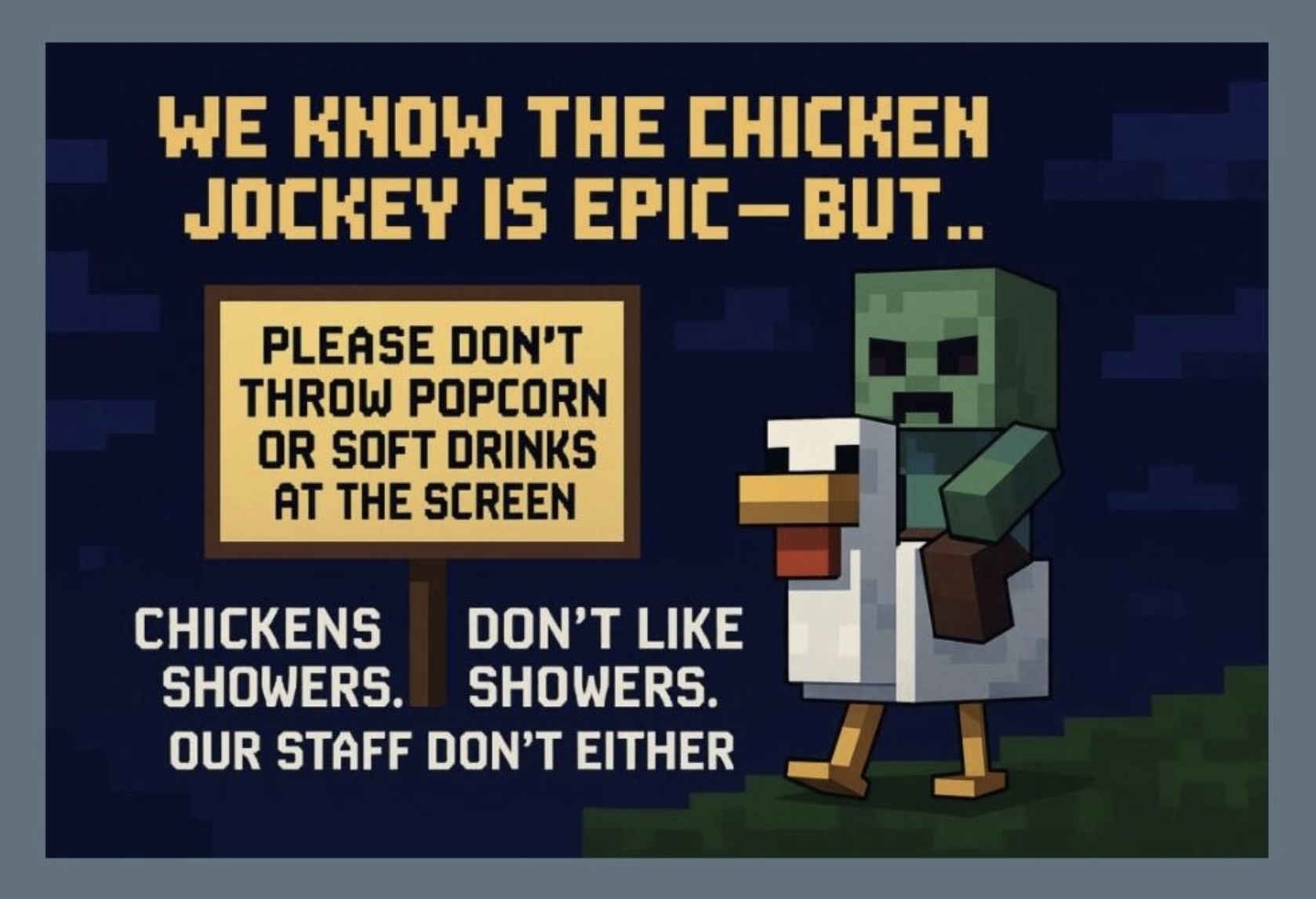 Minecraft is the game for so many Gen Z and even older gamers. Seeing a deep-cut mob like the chicken jockey represented on the big screen hits right in the feels.