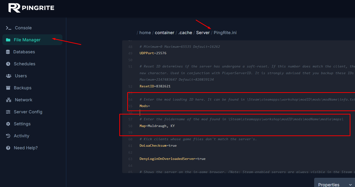 - Head to File Manager tab and open the server `.ini` file like described above.
