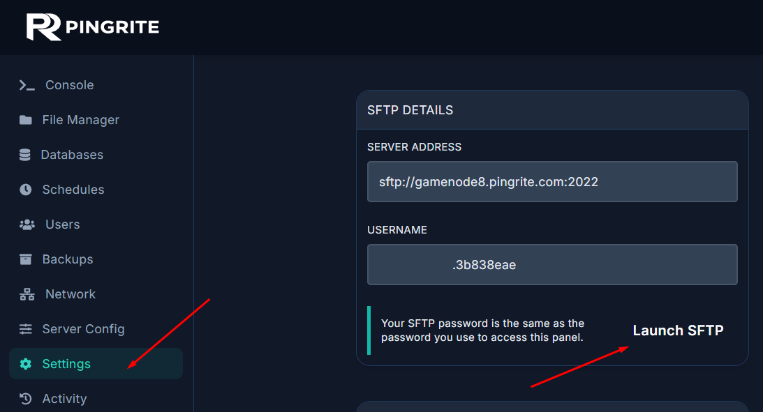 If you run into connection errors, double-check that your panel password is correct. You can reset your password from your control panel's account settings. If issues persist, make sure your FTP client supports SFTP connections and that no firewall is blocking the connection on your end.
